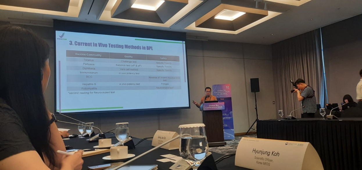 Seoul, Korea Selatan – Kepala Balai Pengujian Produk Biologi (BPPB) Badan Pengawas Obat dan Makanan (BPOM), Dio Ramondrana, S.Si., M.Sc., mewakili Indonesia di Global Bio Conference (GBC) 2025. Acara ini berlangsung pada 3–5 September 2025 di Grand Intercontinental Seoul Parnas, Korea Selatan. Dio memaparkan upaya yang telah dilakukan oleh BPPB dalam mengimplementasikan prinsip 3Rs (Replacement, Reduction, Refinement) khususnya dalam rangka lot release (pelulusan) vaksin.